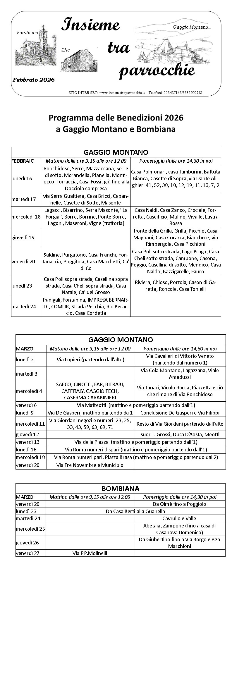 Dal 16/2 Fino al 20/3 benedizioni pasquali a Gaggio