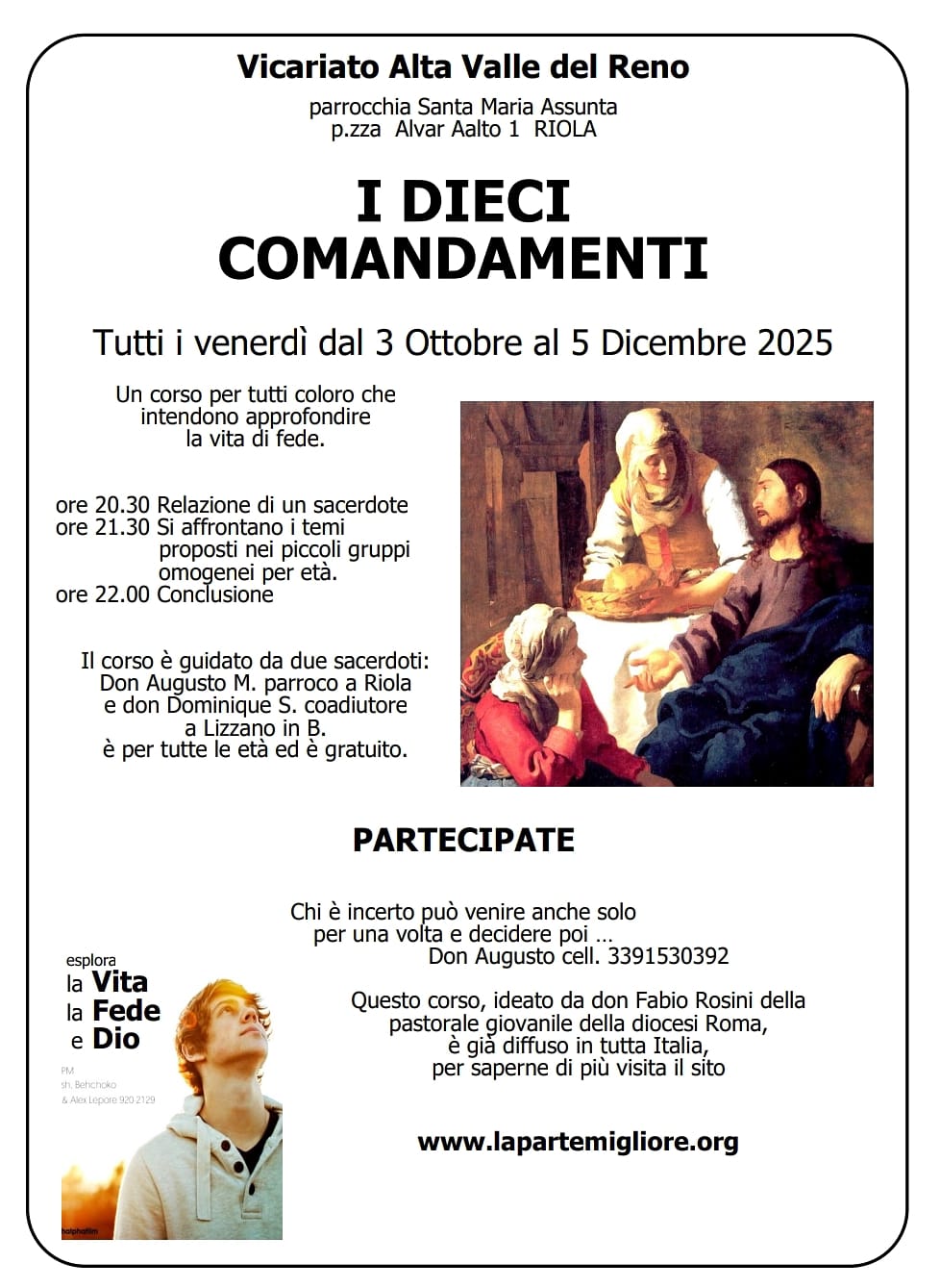 Tutti i Venerdì dal 3 Ottobre al 5 Dicembre 2025 dalle ore 20.30 alle ore 22.00 a Riola corso sui dieci comandamenti.