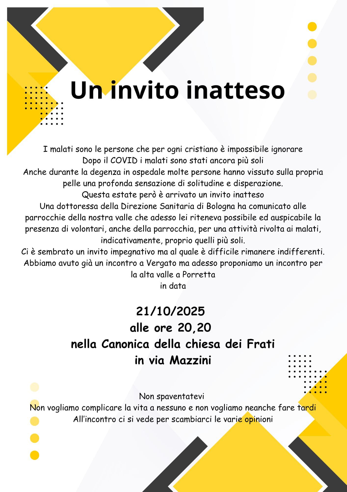 Domenica 19/10 ore 20.00 corso nubendi a Gaggio